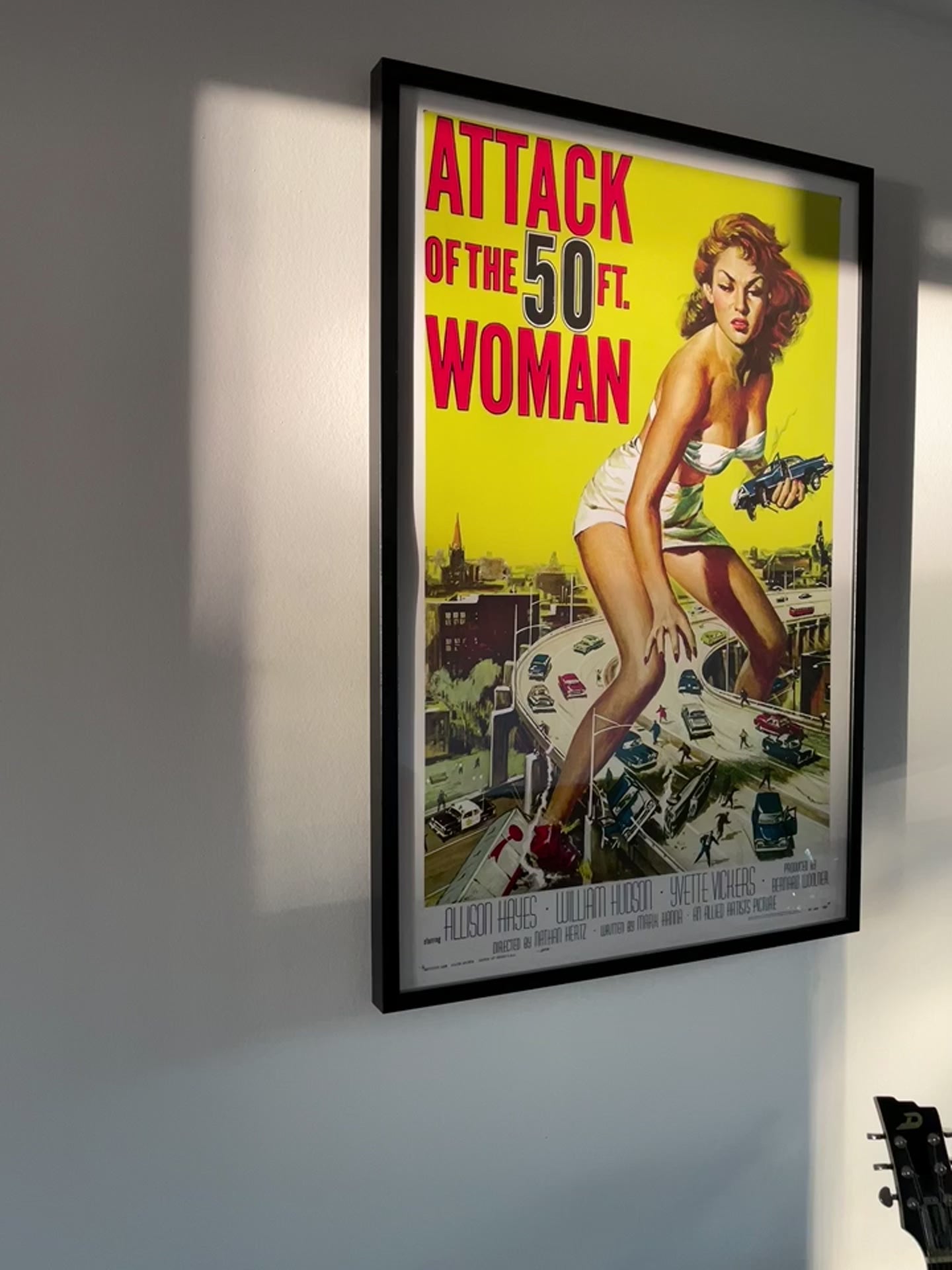 One-sheet film poster by Reynold Brown for the film Attack of the 50 Foot Woman (1958) starring Allison Hayes.