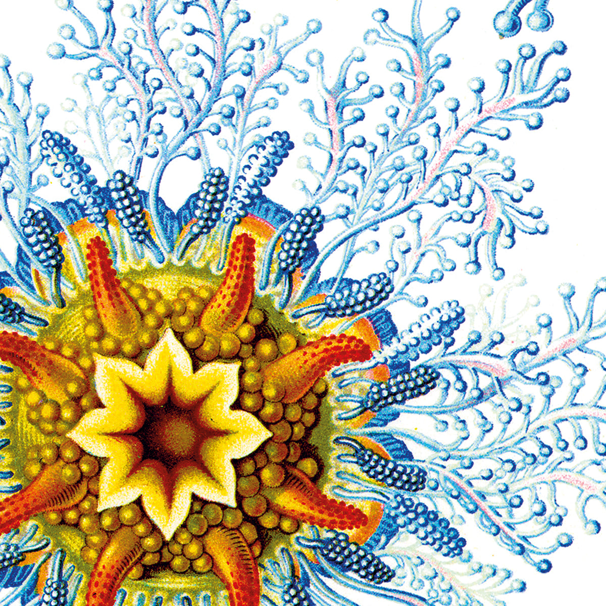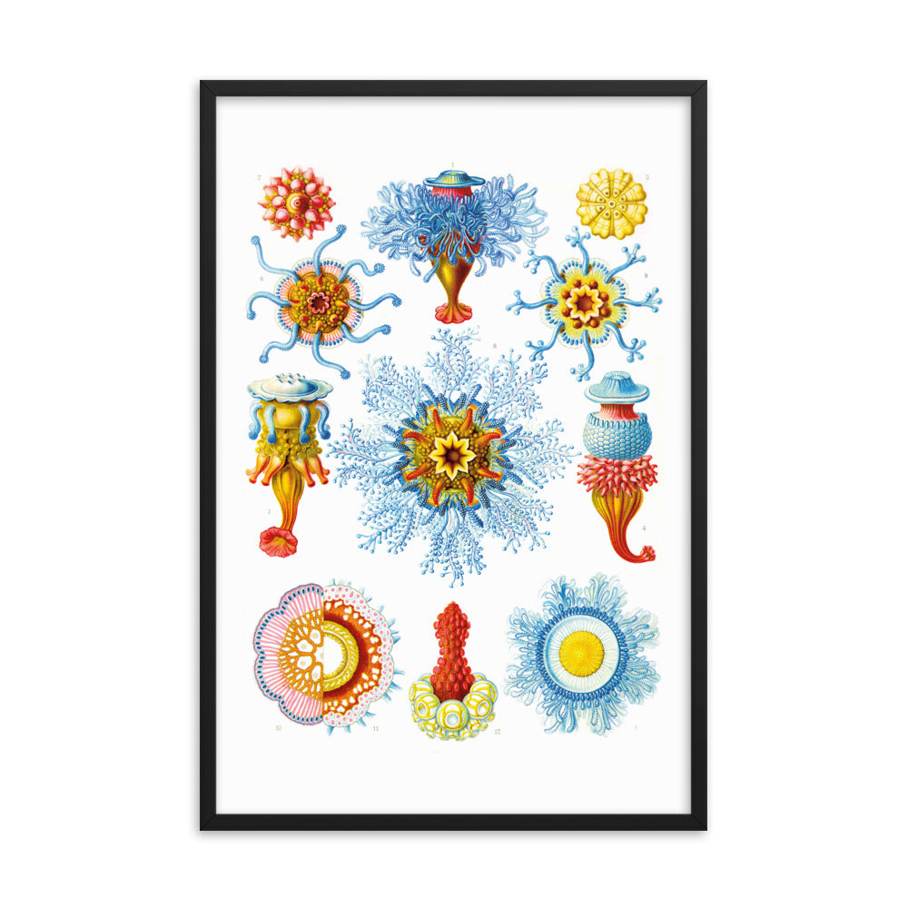 Originally published in sets of ten between 1899 and 1904 and collectively in two volumes in 1904, it consists of 100 prints of various organisms, many of which were first described by Haeckel himself. Over the course of his career, over 1000 engravings were produced based on Haeckel's sketches and watercolors; many of the best of these were chosen for Kunstformen der Natur, translated from sketch to print by lithographer A. Giltsch. (source: wikipedia)