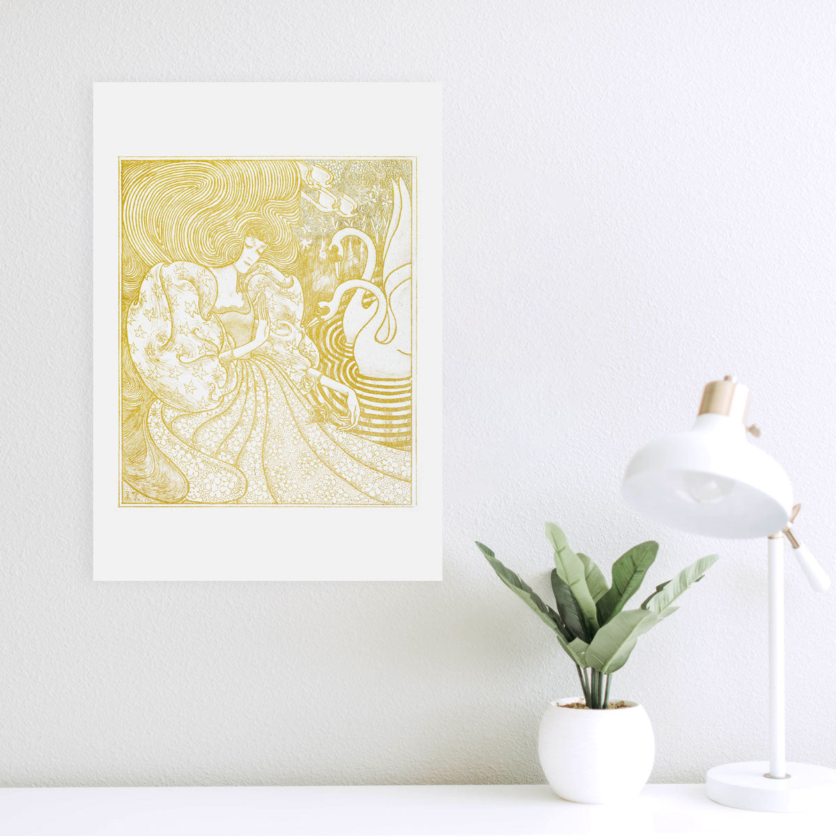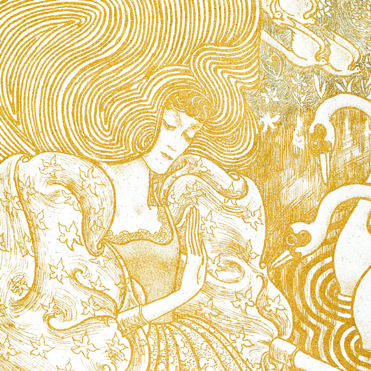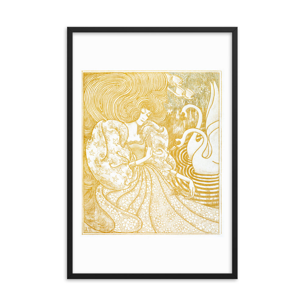 Woman with a Butterfly at a Pond with Two Swans (1894) by Jan Toorop. Original from The Rijksmuseum. Color enhancement and alignment/size correction by Vintage Whale.